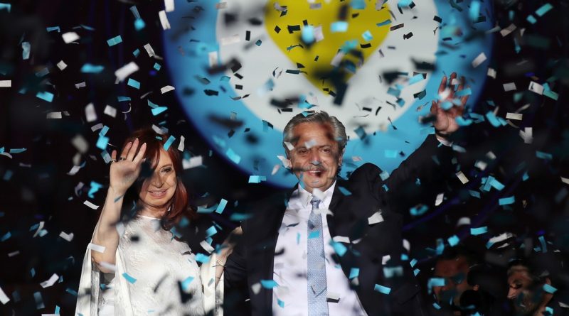 “Estamos decididos a poner a Argentina de pie”, prometió Fernández desde el escenario montado en el frente de la residencia presidencial, de cara a una Plaza de Mayo colmada.