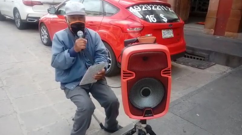 En Zacatecas hay un cantante urbano que anda por todos lados, se le puede ver en el centro histórico y otros puntos como Bicentenario y calles aledañas; se trata de una más de las personas de la tercera edad que sobreviven con dificultades en tiempos de pandemia.