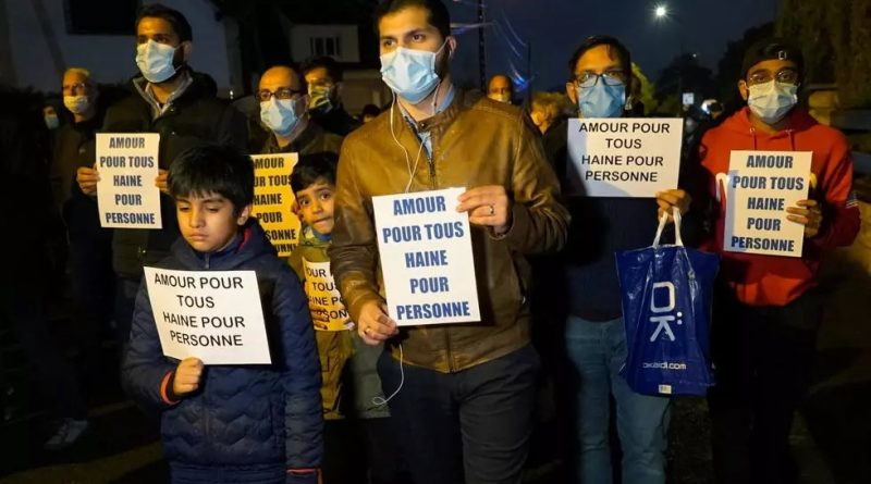 Miles de personas se reunieron el martes frente al colegio donde enseñaba Samuel Paty, en la ciudad de Conflans-Sainte-Honorine, cerca de París, para cumplir un minuto de silencio y marchar por la ciudad.