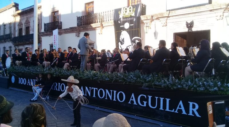 Durante la tarde de este viernes 17 de mayo, en Plaza de Armas se celebró el centenario del natalicio de, Antonio Aguilar, quien naciera en 1919 en el municipio de Villanueva. Cientos de personas se dieron cita en Plaza de Armas para escuchar a la Banda Sinfónica del Gobierno del Estado que, acompañada de charros que lucían sus habilidades, interpretó temas del actor y cantante zacatecano.