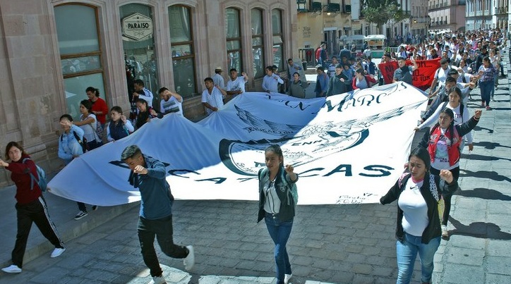 En Zacatecas, la marcha la encabezó una comunidad estudiantil de la Normal Rural de San Marcos “General Matías Ramos Santos”, misma que integra la Federación de Estudiantes Campesinos Socialistas de México.