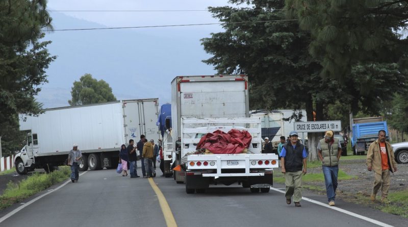 Comuneros bloquean carretera federal de Michoacán en apoyo a normalistas baleados