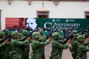 El Gobernador Alejandro Tello y el Comandante de la XI Zona Militar, Guillermo Almazán Bertotto, encabezaron el acto cívico conmemorativo del 105 aniversario de la Marcha de la Lealtad. Evento en el que las fuerzas armadas, en voz de su General, ratificaron su lealtad y compromiso institucional con el pueblo de México y en especial con el territorio zacatecano.