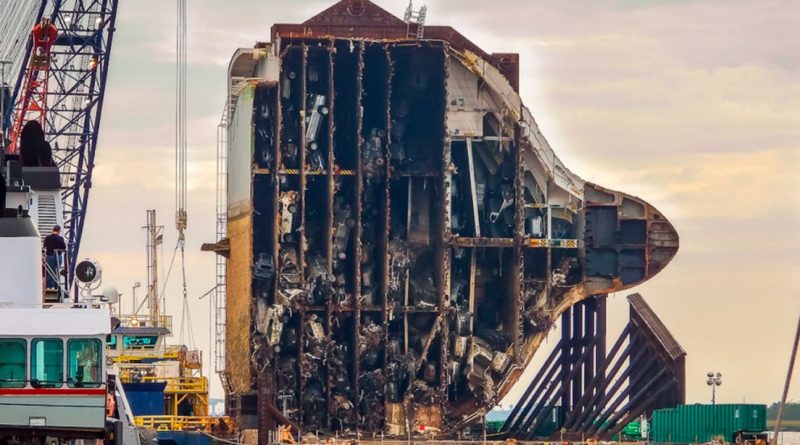 Ahora, más de un año después del incidente, se iniciaron labores de remoción del Golden Ray, que, imposibilitado de recuperación completa, será necesariamente cortado en ocho secciones. La semana pasada se llevó exitosamente a cabo el primer corte, en un proceso impresionante que no fue tarea fácil y requirió de una gigantesca maquinaria, informó el diario The Brunswick News.