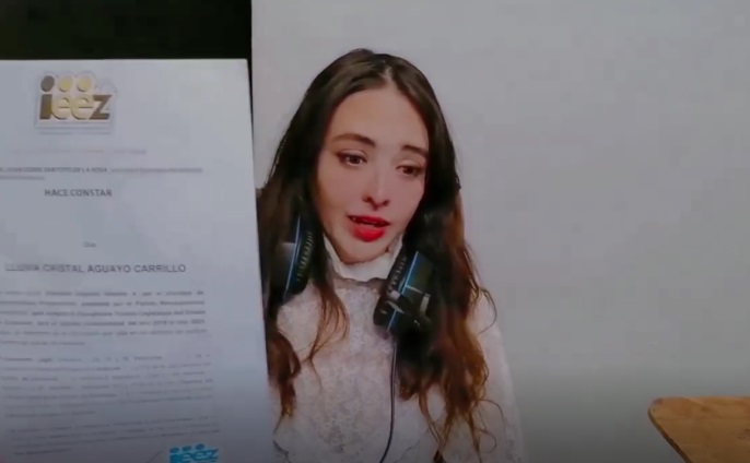 ZACATECAS.- Lluvia Cristal Aguayo Carrillo militante del Partido Revolucionario Institucional externó ser víctima de violencia política por parte de la actual legisladora local Perla Guadalupe Martínez Delgado, quien actualmente busca la reelección, para lo cual, no abandonará el cargo al permitirle la ley conservarlo mientras es candidata, dejando de lado a su suplente Lluvia Cristal.