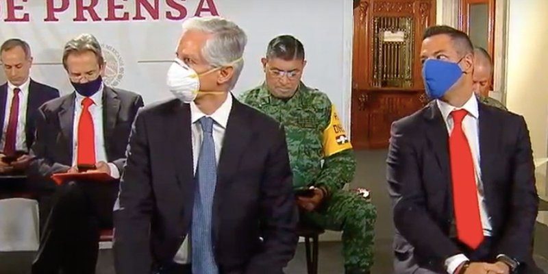 Alfredo del Mazo, gobernador de Estado de México y Alejandro Murat, gobernador de Oaxaca fueron los dos mandatarios estatales que portaron cubrebocas durante la conferencia mañanera del presidente Andrés Manuel López Obrador.