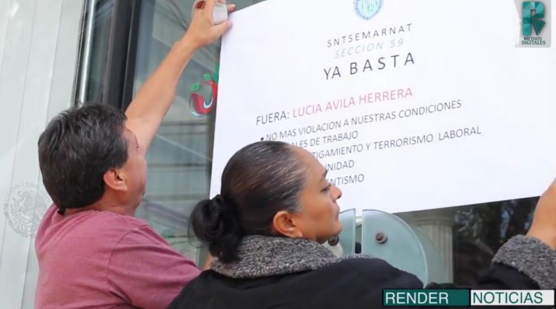 Su manifestación denuncia el acoso y maltrato laboral hacia 14 trabajadores de la Secretaría del Medio Ambiente y Recursos Naturales por la prestadora de servicios Lucía Ávila Herrera, quien les llama “rateros” y “huevones”.