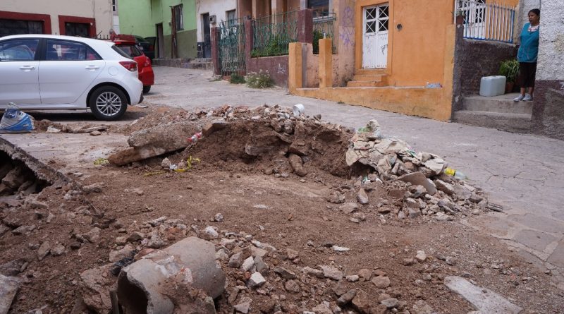 Zacatecas, Zac.- Colonos de la calle de la palma en el barrio de San Antonio denunciaron ante Render Zacatecas la presencia de un agujero en plena calle, mismo que tiene casi medio metro de diámetro ha causado el molestar en los vecinos, que, además de generar inundaciones por las lluvias, tener una fuga ha hecho que los vecinos se accidenten y tengan que ser más cautelosos al momento de entrar a su hogar.