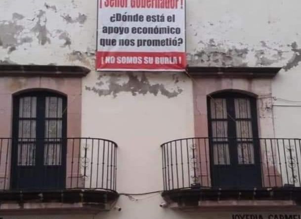 ZACATECAS. – Comerciantes del centro histórico de la capital, denunciaron que el gobernador Alejandro Tello Cristerna no cumplió con la promesa de entregar la segunda parte de apoyos económicos a este sector, a pesar de que se comprometió públicamente a entregarlos.