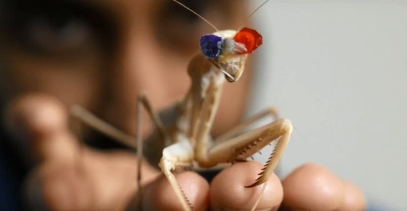 Para probar la percepción de profundidad en las mantis religiosas, el autor principal y ecologista del comportamiento Vivek Nityananda mostró películas con campos de profundidad ilusorios a los insectos, utilizando una versión simplificada de los lentes comunes para ver cine en 3D.