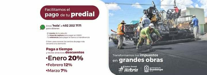 Descuentos en el impuesto predial: Guadalupe