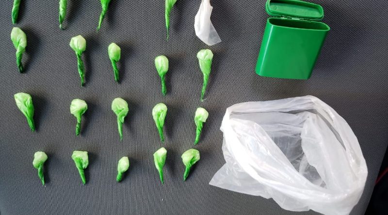 Por lo antes señalado, los elementos se acercaron con las dos personas y accedieron a una revisión de rutina a petición de los oficiales, tras la revisión se les encontró en posesión de 15 pequeños envoltorios en color verde con una sustancia granulada y cristalina al parecer droga conocida como cristal, así mismo se les encontró una caja pequeña de plástico, misma que en su interior contenía cinco envoltorios más con la misma sustancia.