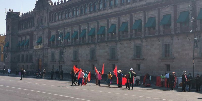 Alrededor de 25 personas, simpatizantes de la Lucha Zapatista, Casa del Estudiante, así como integrantes del Frente de Trabajadores por el Derecho a la Salud y la Seguridad Social y de la Asamblea Nacional de Trabajadores de la Ciudad, acudieron al Zócalo capitalino frente a Palacio Nacional para conmemorar el Día del Trabajo.