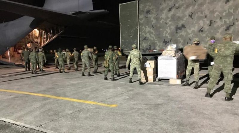 El Ejército y Fuerza Aérea mexicanos distribuyeron en los últimos días más de 30 toneladas de insumos y equipo médico en hospitales militares de tres estados de la República.