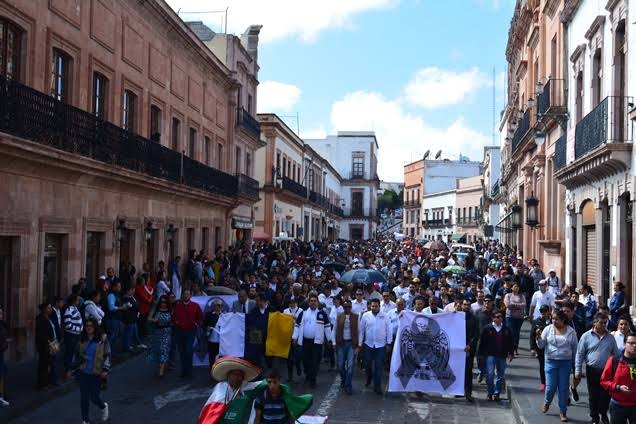 Así mismo, indignados entonaron gritos de “por qué nos asesinan si somos la esperanza de América Latina” e invitaciones al pueblo zacatecano para lograr unirse al movimiento, además de mostrar su unión con los versos “las universidades unidas jamás serán vencidas”.