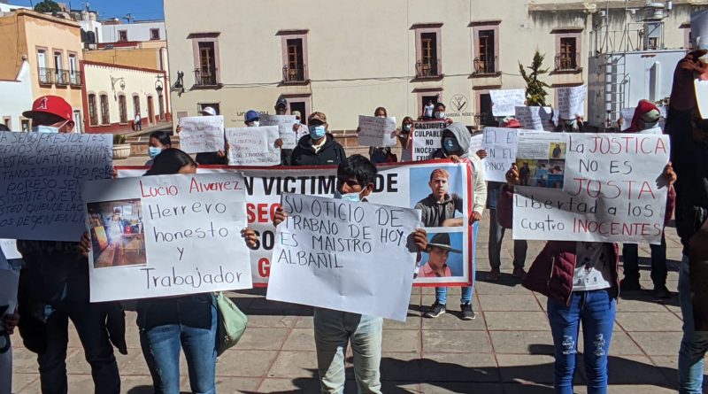 Zacatecas, Zac.- Familiares y amigos de trabajadores que fueron víctimas de secuestro y ahora son acusados de distintos cargos, se manifestaron en las afueras del Congreso del Estado para exigir justicia.