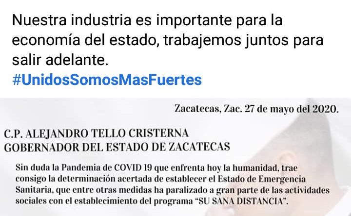 El objetivo de esta agrupación es buscar soluciones de la mano de las autoridades para reactivar la industria con los protocolos establecidos por el comité de seguridad de salud. Pues se afirmó que 200 empresas zacatecanas que dan alrededor de 1,038 empleos, han tenido que cerrar y aplazar sus convenios por la contingencia.