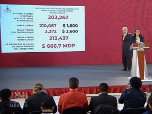 Detalló que en el caso de los niños con capacidades diferentes, los tutores recibirán un apoyo de siete mil 200 pesos por estos cuatro meses, luego que debido a ajustes en el padrón, hubo un retraso en la entrega de recursos y se está haciendo el pago retroactivo, que originalmente es bimensual.