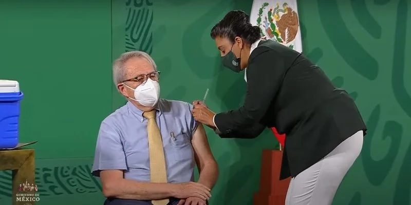 El secretario de Salud, Jorge Alcocer, recibió la segunda dosis de la vacuna contra el coronavirus o COVID-19 en plena conferencia mañanera. La encargada de aplicarle el biológico de AstraZeneca, fue la jefa de Enfermeras del IMSS, Fabiana Maribel Zepeda, conocida como jefa Fabiana.