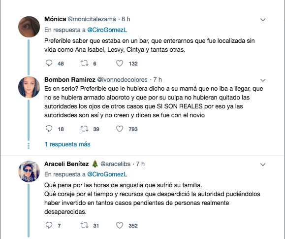 Usuarios también lamentaron la situación, señalando que en el tiempo empleado para buscar a Karen, se hallaron a dos víctimas más de feminicidio.