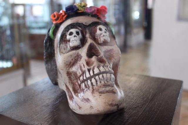 En los pasillos del Mercado González Ortega -en el centro de la capital zacatecana- donde expone varios de sus tradicionales cráneos en arcilla, porcelana, estambre y otros materiales, Laura comparte su entusiasmo por la fiesta de los muertos y las enigmáticas representaciones que de ella emanan, como la calavera mexicana.