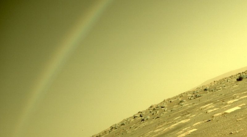 “Muchos se han preguntado: ¿Es eso un arcoíris en Marte? No. El arcoíris no es posible aquí. Los arcoíris son creados por la luz que se refleja en las gotas de agua redondas, pero aquí no hay suficiente agua para que se condense, y hace demasiado frío para que haya agua líquida en la atmósfera. Este arco es un destello de la lente”, detalló la NASA.