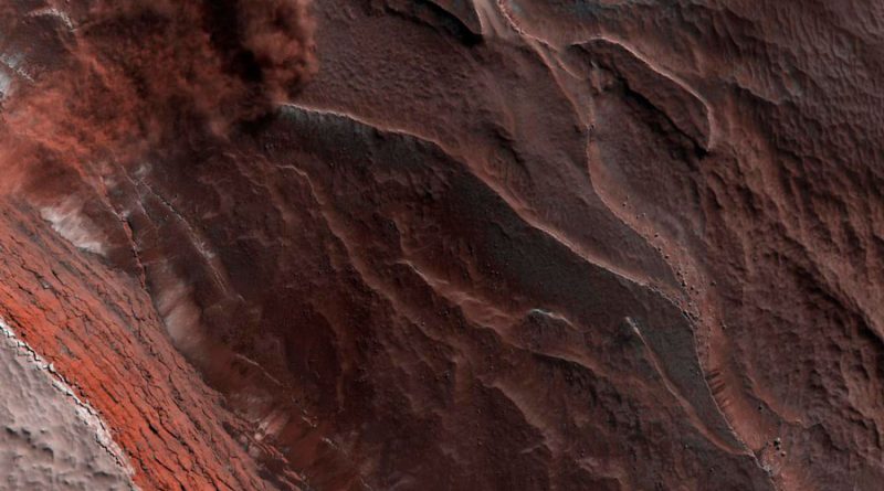 La foto de la avalancha fue capturada por el orbitador a través de su cámara de Experimento de Ciencia de Imágenes de Alta Resolución (HiRISE), desarrollada por el Laboratorio Lunar y Planetario de la Universidad de Arizona. En la imagen, se puede ver una nube de polvo rojizo en la ladera de una montaña en Marte.