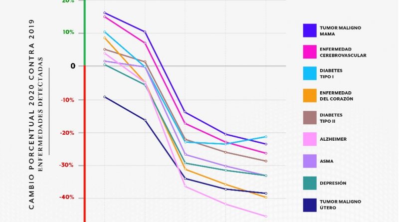 El diagnóstico de menos enfermedades es una muestra más del impacto de la pandemia en México, a ello se suma el aumento en el número de muertes en 2020 en comparación a los fallecimientos del año anterior, y la falta de atención hospitalaria y de urgencias, como se publicó en entregas anteriores.