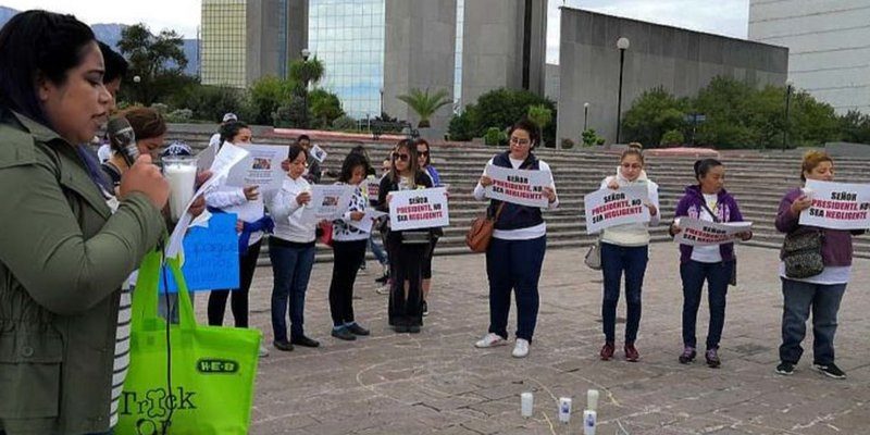 Con pancartas frente al Palacio de Gobierno de Nuevo León, madres de familia de niños con cáncer protestaron para pedir al presidente Andrés Manuel López Obrador que envíe los medicamentos para las quimioterapias que reciben en la Clínica 25 del Instituto Mexicano del Seguro Social (IMSS) y en el Hospital Universitario.