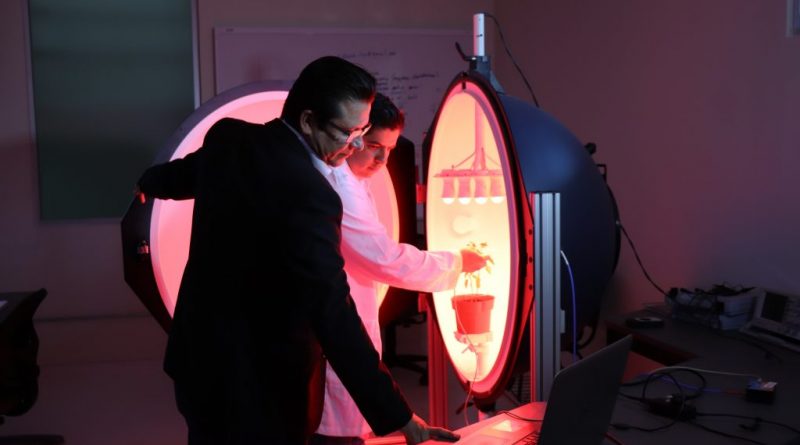Ernesto Olvera realizó los experimentos en una cabina con temperatura y luz controladas. La cabina alojó espinacas egipcias, plantadas individualmente en tres filas y expuestas a diferentes colores de luz azul, verde y amarilla.