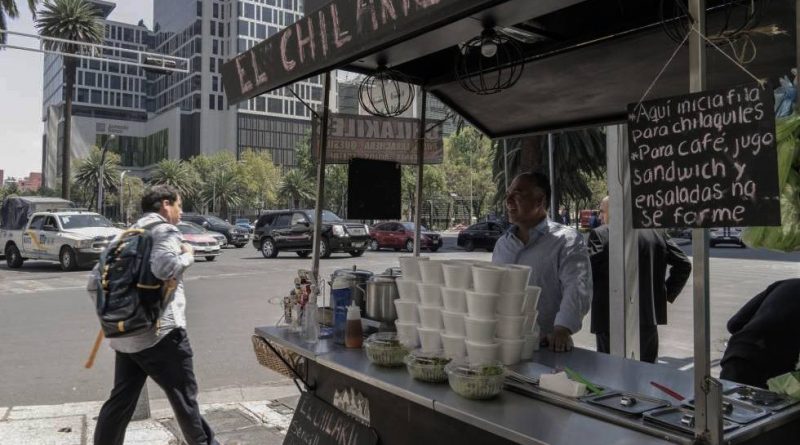 Es una mañana soleada de mayo en Ciudad de México y en una esquina de la calle de Niza que desemboca en el ajetreado Paseo de la Reforma —vía neurálgica de la capital—, Leonel Bernal ya tiene todo dispuesto en su carro de venta de chilaquiles. Los oficinistas caminan apresurados con su cara aún de sueño, algunos con los auriculares al oído y la vista perdida en sus teléfonos móviles. Cruzan la avenida sorteando las largas hileras de vehículos, algunos sonando los cláxones ensordecedores, como si con ello pudieran hacer avanzar el tráfico mañanero. En el puesto de Bernal algunas personas hacen una parada urgente para comprar el platillo: trozos de tortillas fritas bañadas en salsa verde o roja, con carne o pollo en hilachas y queso encima. Bernal llega a vender hasta 400 órdenes de chilaquiles en viernes, a 25 pesos (1,3 dólares) el plato pequeño, 55 el grande. El puesto “El Chilakil” ha sido su salvación después de haber perdido el trabajo dentro del sector formal, tras décadas dirigiendo una fábrica propia de producción de botellas, que cerró tras la crisis económica de 2008. Con 60 años a cuestas era difícil, dice, que alguna empresa lo contratara. Su opción fue abrirse paso en el sector informal, en el que más de 30 millones de mexicanos se ganan la vida día a día en la que es la economía número 13 del mundo y la tercera más importante de América, después de Estados Unidos y Brasil.