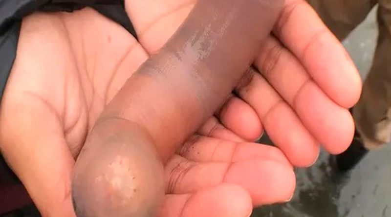 La criatura marina fálica de 25 centímetros generalmente viven en madrigueras debajo de la arena.