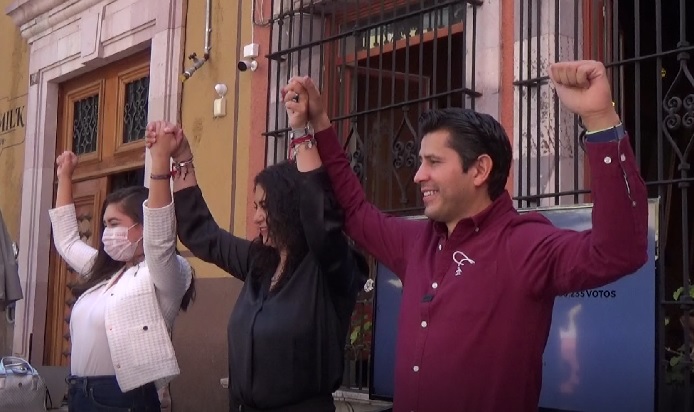 ZACATECAS.- El municipio de Guadalupe nuevamente se pinta de color guida, pues los resultados electorales preliminares definen como electo al candidato Julio César Chávez Padilla, quien encabezará por segunda ocasión la presidencia municipal. Durante una conferencia, el candidato contó con el respaldado de las diputadas electas del tercer y cuarto distrito Violeta Cerrillo y Roxana Muñoz; quienes en conjunto, rectificaron su compromiso de trabajo a favor de las y los guadalupenses.
