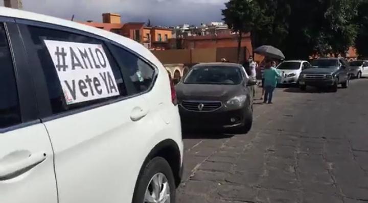 A bordo de sus vehículos, un grupo de ciudadanos zacatecanos participó en una manifestación para exigir la renuncia del presidente de México, Andrés Manuel López Obrador.