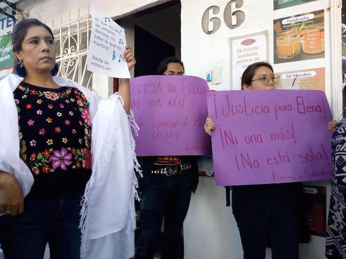 “Las autoridades de Oaxaca encubren a agresores de mujeres como Juan Vera, el autor intelectual del ataque a Elena, su caso se investiga cómo ‘lesiones” y no como intento de feminicidio”, denunció una integrante del Colectivo Mujeres Organizadas de la Mixteca durante una manifestación frente a la oficina de la Representación de de Oaxaca en la Ciudad de México a más de tres meses de la agresión contra la joven de 26 años, quien sufrió quemaduras en el 90 por ciento de su cuerpo luego de que un hombre al que asesoraba con un trámite le arrojó ácido en Huajuapan de León.