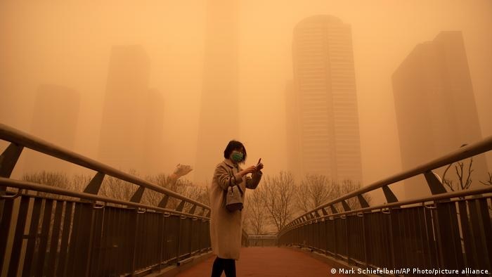 Pekín amaneció este lunes (15.03.2021) envuelta en una espesa niebla marrón debido a los altos niveles de contaminación de los últimos días y a una tormenta de arena proveniente de Mongolia. Ambos fenómenos producen un cóctel peligroso para la salud y reducen la visibilidad a unos centenares de metros.