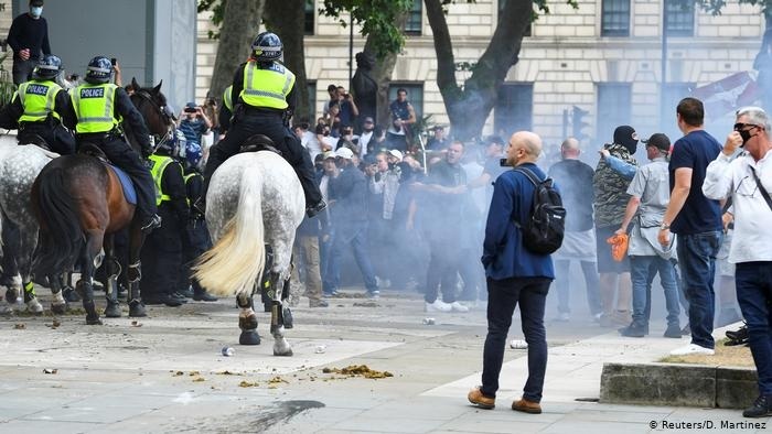 Quince personas resultaron heridas este sábado (13.06.2020), entre ellas dos agentes policiales, luego de que manifestantes y las fuerzas de seguridad se enfrentaran en el centro de Londres, donde grupos de militantes de ultraderecha se reunieron para, según ellos, proteger las estatuas que se encuentran cerca del Parlamento de Westminster, que habían sido vandalizadas en protestas antirracistas.
