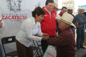 Durante la entrega de apoyos a productores del sector rural realizada en el salón El Mezquite, de esta comunidad, la presidenta municipal Judit Guerrero agradeció el constante apoyo del gobernador del Estado, Alejandro Tello Cristerna, quien se manera decidida ha colaborado en todos y cada uno de los proyectos que se le han planteado, por lo que aprovechó para desearle una pronta recuperación.