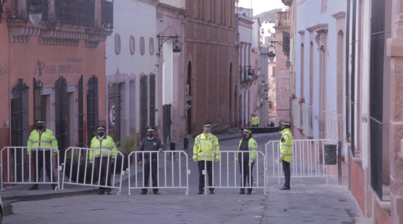 Un día anterior, personal de avituallamiento colocó barreras de acero en los alrededores del Lagislativo, estilo modernista con el vitral interior de nuestro genial Pedro Coronel en su techumbre.