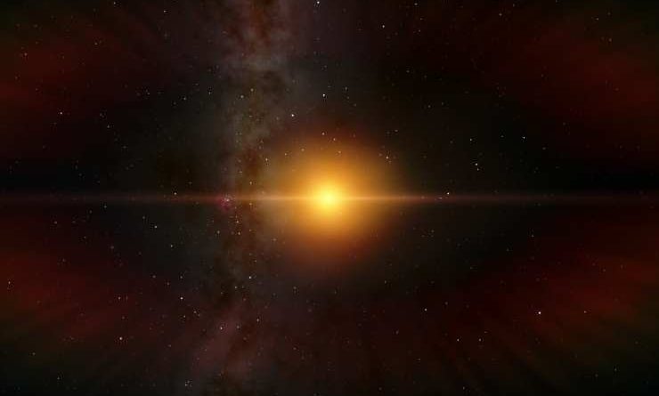 Una estrella amarilla y un planeta gigante gaseoso