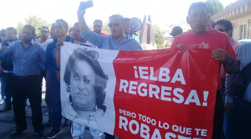 Con consignas como “ladrona”, “ratera”, “que regrese a la prisión”, entre otras, decenas de maestros, jubilados y pensionados cantaron durante un par de horas, expresando su rechazo hacia la ex líder sindical.