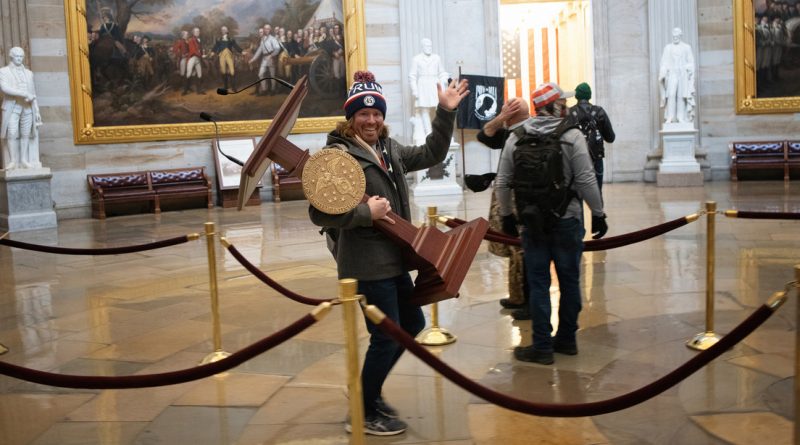 Hace dos días se viralizó la imagen de un manifestante llevándose ese mismo atril durante el asalto al Capitolio.