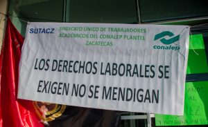 ZACATECAS.- Este lunes, trabajadores sindicalizados del Colegio de Estudios Científicos y Tecnológicos de Zacatecas dieron inicio a la toma de las instalaciones de Ciudad Administrativa en protesta ante la falta de pago de la segunda quincena de septiembre y la primera de octubre, el pago del bono de superación académica así como el retroactivo al salario y prestaciones. Lucio Mendoza Amaro, secretario general del Sindicato de Trabajadores informó que la cantidad que se adeuda hasta el momento, es de 22 millones de pesos, viéndose afectados alrededor de 600 docentes y nueve mil alumnos de los 54 planteles del estado.