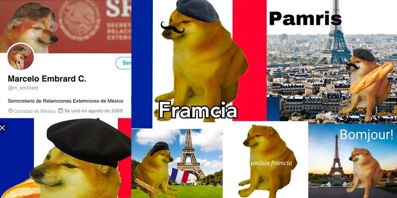 Seguidores elaboraron memes de un perrito conocido como “cheems” con fondos en la Torre Eiffel o con las leyendas “Framcia” y un gorro negro en la cabeza, una prenda que se utiliza para estereotipar a los franceses.
