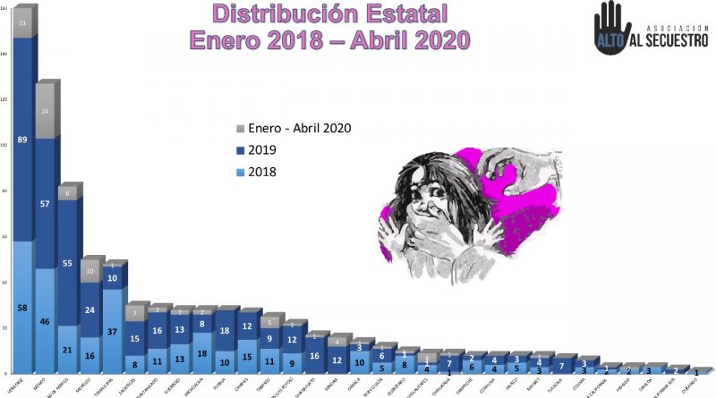 El estado de México es el que ha tenido mayor incidencia de secuestros en el año al reportar 24 casos en el 2020 y entre ese año y el 2018 presenta un total de 127 delitos de esta Indole contra la mujer, colocando a la entidad como la segunda com más secuestros en el país. El primero es Veracruz con 160.